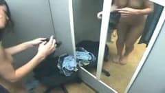 esta linda morena está inteiramente nua em um provador onde você vai poder admirar suas grandes mamas gostosas!