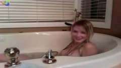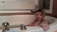 Esta bela jovem relaxa em um banho quente. Ela aproveita a oportunidade para masturbar seu bichano com o seu chuveiro!