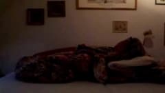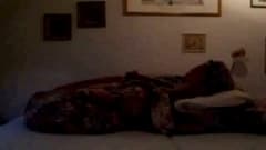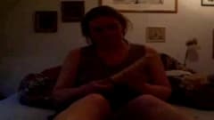 Sempre que seu marido está longe, esta Milf instala-se na cama em frente a webcam e enfia um grande dildo em sua vagina.
