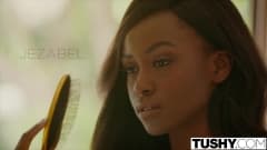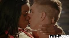 Esta preta sublime suga com tesao o pau branco grande desse cara antes de soltar gritos de prazer durante uma sodomia!