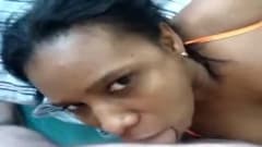 Esta cena começa com uma preta chupando rola! Ela bate punheta com as mamas e recebe o pau na buceta, mas acaba com uma gozada facial!
