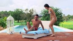 Casal enamorado e sexo a beira da piscina