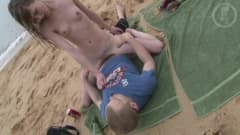 Este casal amador vao transar como atores porno. Eles vão fazer um vídeo de sexo na praia. É lindo e muito legal!