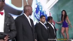 Giselle Leo está no meio de um gangbang com caras que não podem esperar para cobrir seu rosto com esperma porque ela ama bukkake!