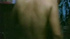 Esta mulher negra está no duche acariciando seu corpo quente e seios enormes antes de se vestir novamente e ela não sabe que está sendo observada!