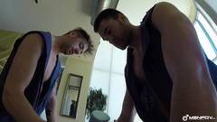 Três amigos se reúnem para uma sessão de sexo quente, que inclui sextoys e deixam eles tao duros que eles têm de esvaziar as bolas!