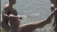 Esta loira banha-se no lago com seus dois amigos bissexuais, que se dispõem a transar com ela para poderem obter o máximo prazer sexual!
