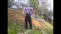 Este cara mais velho apenas quer mostrar como ficam suas nadegas ao ar livre para que voce se possa excitar ao assistir