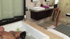 Asa Akira e uma amiga intima vao fazer umas massagens muito gostosas a este homem na banheira. Vai ser um trio muito gostoso
