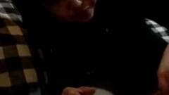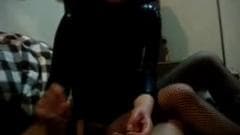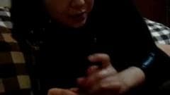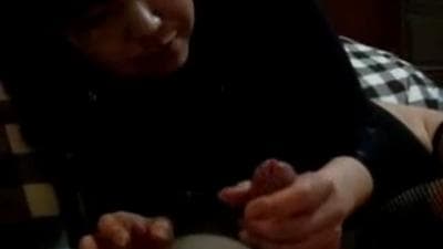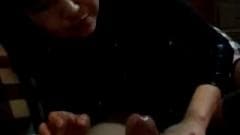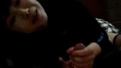 Ela senta-se na frente dele e bate uma punheta gostosa e suga-o até que ele estar pronto para explodir tudo no seu rosto bonito!