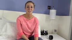 Esta jovem se chama Victoria e vai ter o seu primeiro casting porno em frente da camera com um cara que ejacula o seu prazer na sua cara