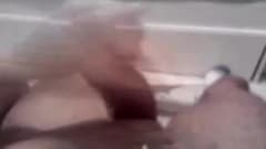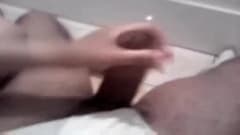 Esta mulher sabe como agradar seu homem e ela faz isso com uma boa punnheta que faz ele ejacular em cima dele proprio!