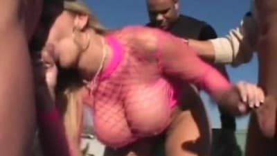 Uma loira com grandes mamas se masturba aqui. Eles o compartilham na praia.