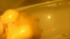Esta morena tem mamas enormes e ela fica mais animada quando ela está no chuveiro esfregando-se e cobrindo-se de sabão!