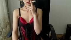 Esta milf sexy loura nos mostra como ela é quente! Ela fuma um cigarro e muda suas roupas na frente da webcam!