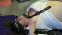 Aqui nós vemos uma mulher com uma máscara que se toca e fica excitada antes de sugar a rola do seu homem e de ele ficar bem duro para ela!