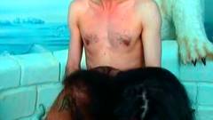 Esta morena quer deixar seu homem tão animado quanto possível e vemos isso nesta cena onde ela deixa ele brincar com seu bichano e fodê-la!