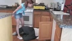 Esta moça ficou em casa sozinha e vai ter de aguentar as investidas do encanador que vai rebentar com a buceta dela quando lha apanhar de quatro!