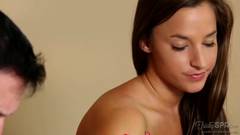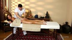 Esta sensual morena recebe prazer deste cara que lhe dá uma massagem corporal completa e que inclui o seu bichano molhado também!