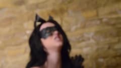 Harmony Reigns está vestida de gata enquanto ela suga o pau de seu amante homem aranha que tem um pau duro!