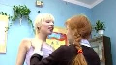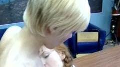Aqui está um casal de estudantes lesbicas que querem desfrutar de uma sessão de sexo com dedos e cunnilingus antes da aula começar!