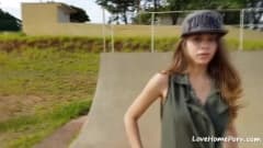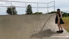 Esta jovem vai gozar desta masturbação no meio de um parque de skate hoje porque saber que poderia ser apanhada deixa-a excitada!