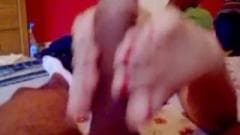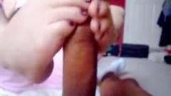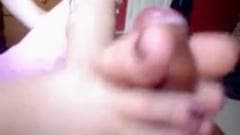 Esse cara tem um fetiche com pé e ele fica com tesão quando ele vê seus pés descalços em torno de seu pau masturbando-o, não perca esta cena!