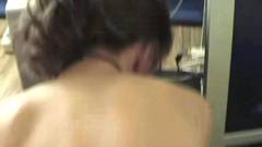 Essa garota conseguiu excitar o namorado por estar nua em casa e é por isso que ele decide fazer sexo na mesa onde ele tem o computador.