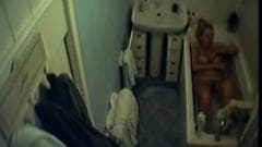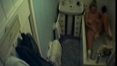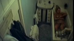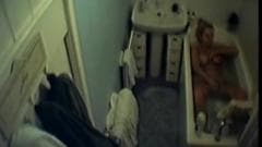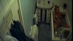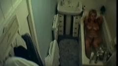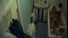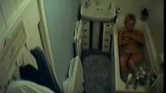 Esta cena registrada em casa com uma câmera, nos deixa ver uma mulher madura completamente nua na banheira.