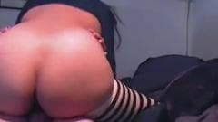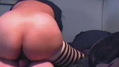 Esta puta amadora tem uma bunda grande e ela está usando meias para o seu homem ficar mais animado e ele prega seu cu no sofá!