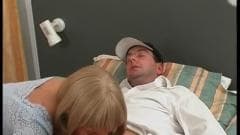 Dois caras mais velhos, uma moça e todos se sentem excitados. Ela goza quando ela fica com a bunda e sua buceta fodida nessa dupla penetração!
