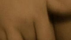 Casal amador grava um video porno caseiro, onde o marido penetra a sua mulher sem camisinha enquanto esta massaja a sua buceta.