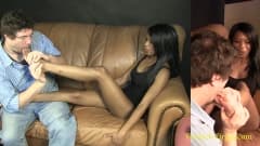 O cara brinca com os pés e curte a buceta da ninfeta, levando ela a loucura, depois de muito tesão ela agradece com uma punheta feita pelos seus pés.