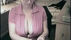 Esta milf tem mamas naturais enormes e ela fica tão animada quando ela começa a acariciá-los na frente da câmera, eles são grandes e suculentos!