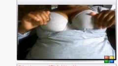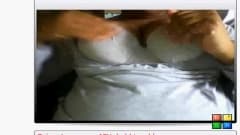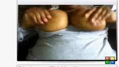 Amadora coloca suas grandes mamas para fora e mostra tudo na frente da câmera, ela começa a acariciá-los também!