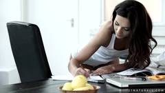 Alexis brill estava a cortar uns papeis mas acaba com pénis na sua buceta.