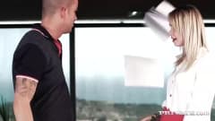 Quando a secretária quer um aumento de salário, ela recorre à melhor estratégia que consiste em fazê-la passar um gostoso momento de sexo.