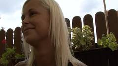 Esta mulher loira é fodida ao ar livre e consegue excitar este homem que acaba por gozar na cara dela. Será muito bem penetrada.