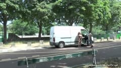 Esta morena com tesão quer transar dentro de uma van indo com um cara que grava e outra que fode-a completamente.