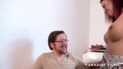 Natalie encontra seu companheiro lendo revistas eróticas logo pela manhã na cozinha, e decide levar chupar pau e levar na buceta como pequeno almoço