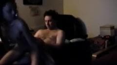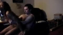 Esta puta negra vai ter que agradar seu namorado na casa quando ele a surpreende jogando no computador. Eles são um par muito excitado!