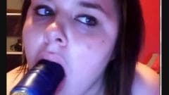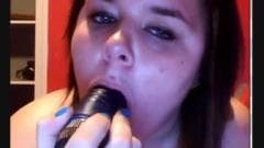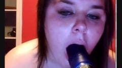Esta morena gordinha quer praticar suas habilidades de sucção, então ela agarra seu vibrador e chupa até ficar molhada!