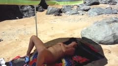 Ela vai à praia e fica totalmente nua para apanhar sol, para desfrutar o máximo de prazer que ela pode sentir em seu corpo bonito e saboroso.