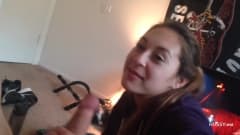 Essa jovem quer chupar este pau, mas com muito cuidado porque não sabe em que momento ele vai explodir nela. Ela sabe como fazer muito bem!