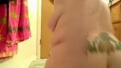 Essa mulher gordinha está cheia de desejo e fica se masturbando sua buceta gostosa com um dildo bem grande e grosso no banheiro.