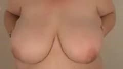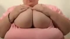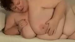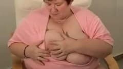 Esta mulher madura vai divertir-se ao brincar com as suas mamas. Uma mulher grande e gorda brincando com suas mamas. Eles são realmente grandes