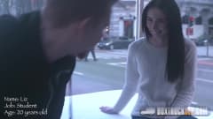 Esta bela morena quer excitar muito este homem dentro de um camião com paredes de vidro, onde você se pode ver a rua enquanto eles fodem.