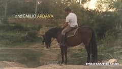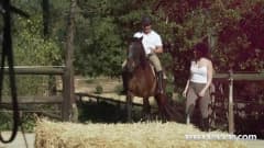 Esta mulher espera que este homem saia de seu cavalo para transar com ela, já que ela se sente muito quente em seu corpo e quer o melhor sexo.