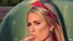 Esta bela mulher tem um belo jardim em sua casa, e ela fica muito animada quando percebe que o clima está muito bom. É por isso que ela se masturba!