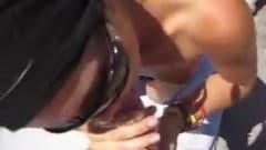 Esta gaja está na praia e começa o trabalho de tocar-se com vibrador e uma grande verga vai acabar com o trabalho.